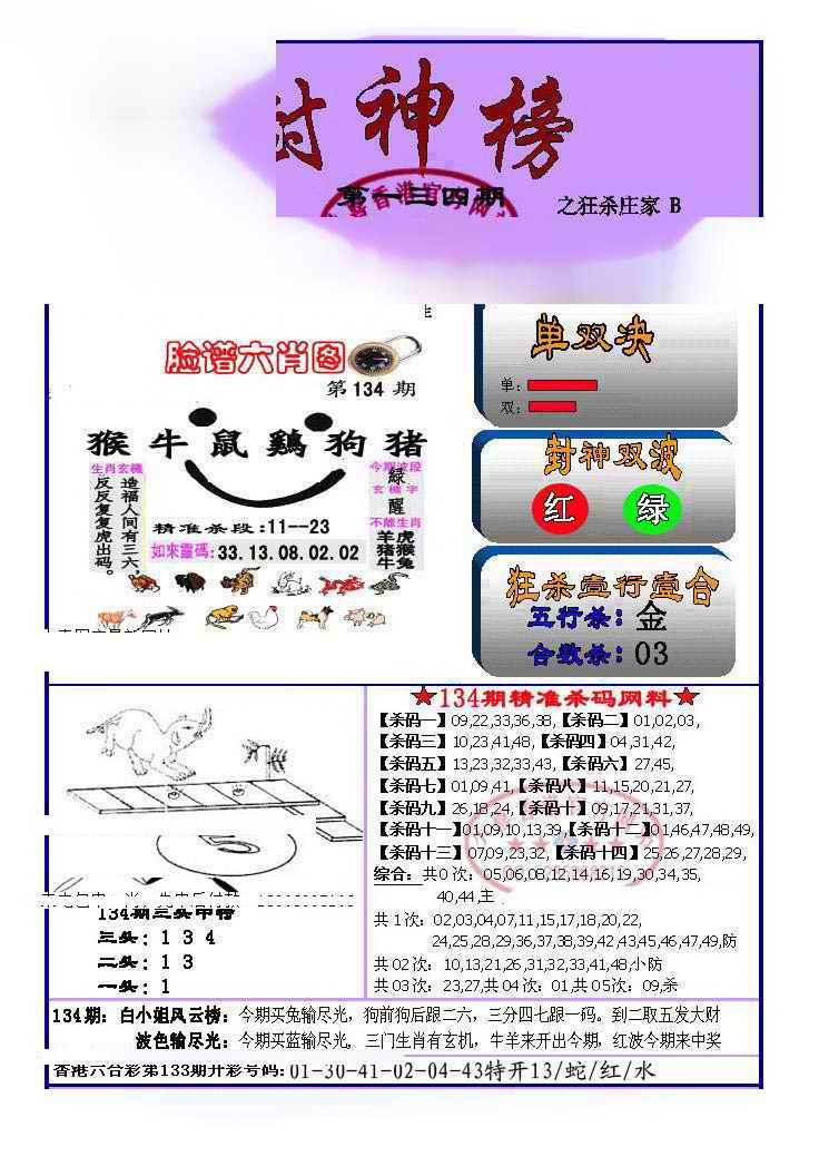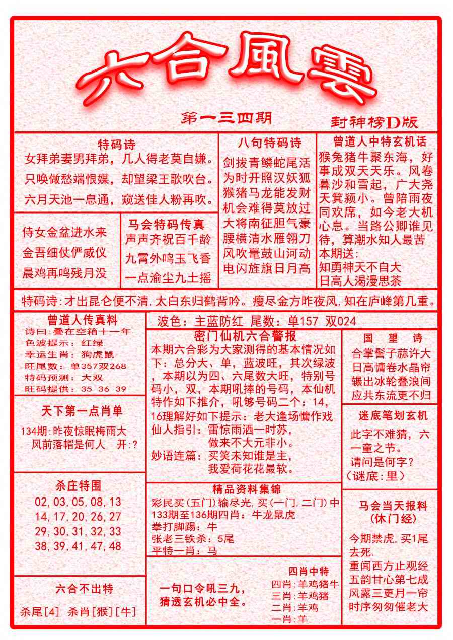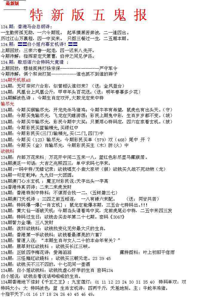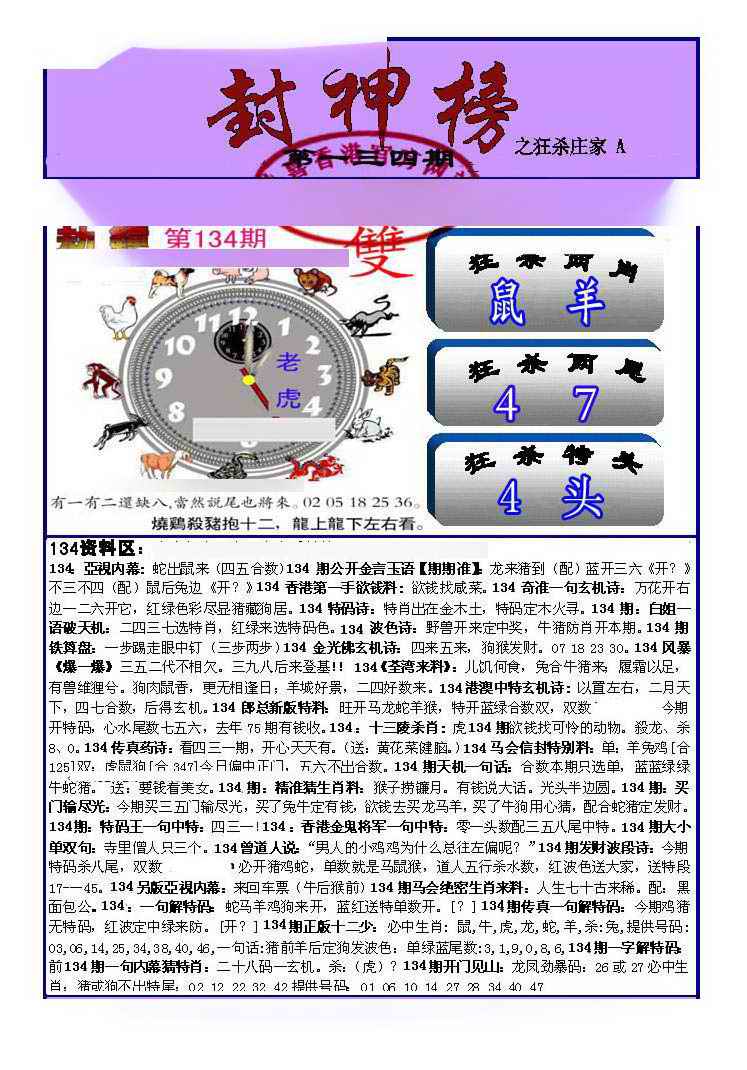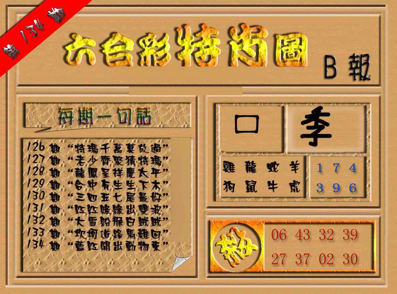 063 六合禅机A 064 六合禅机B 069 特 新 报A 070 特 新 报B