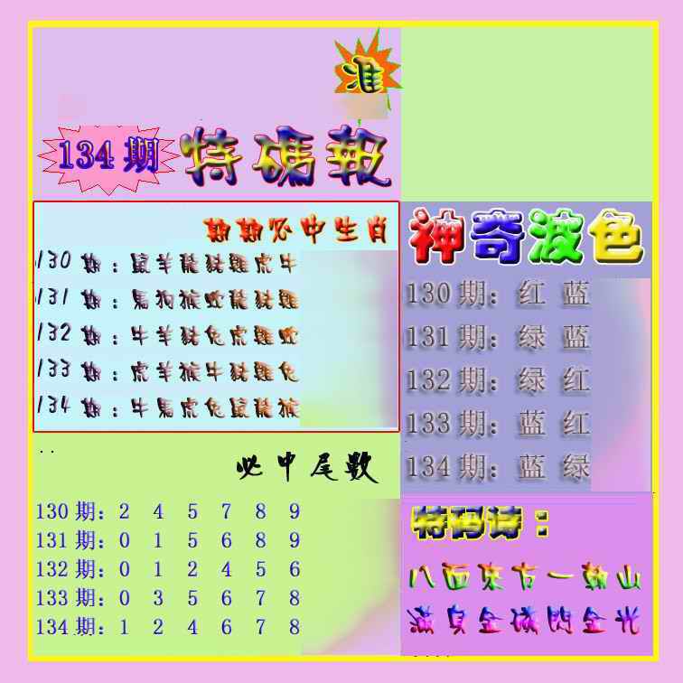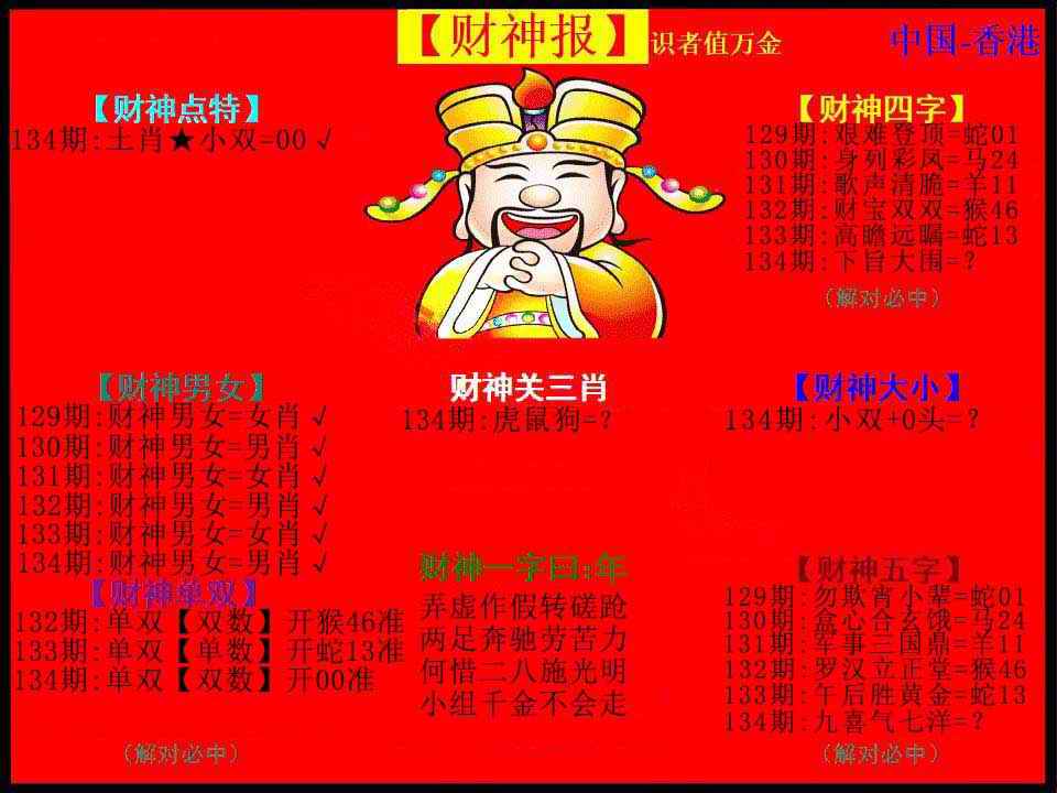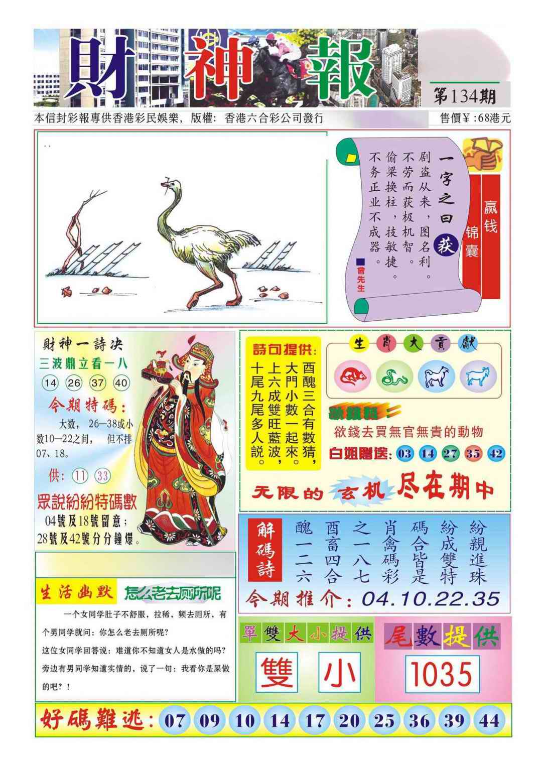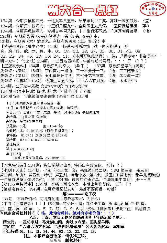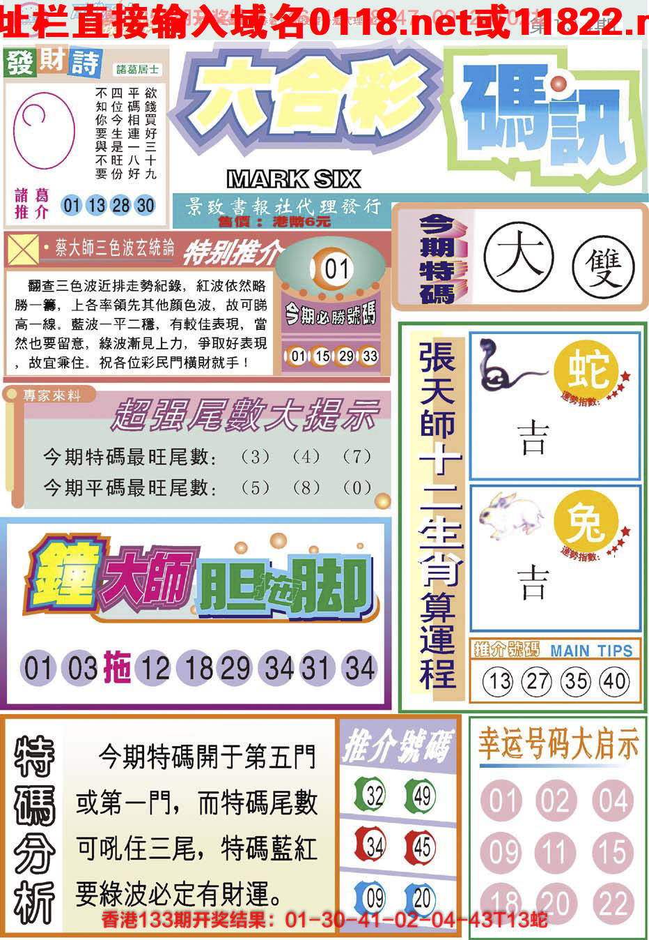 063 六合禅机A 064 六合禅机B 069 特 新 报A 070 特 新 报B