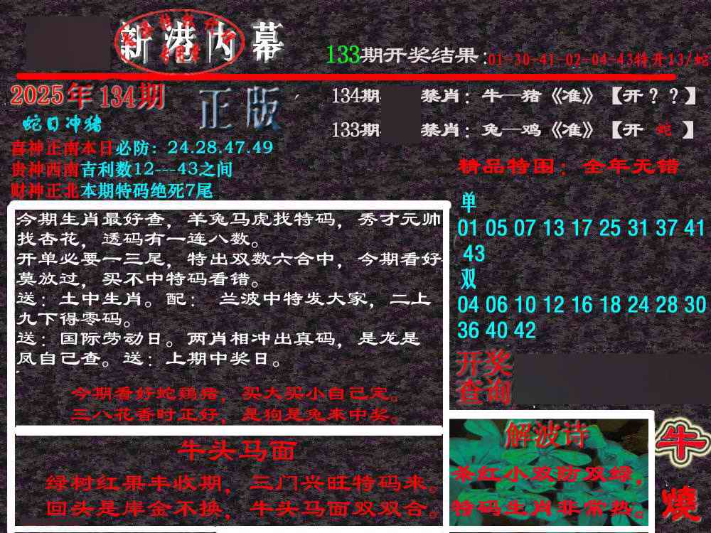 1532 正宗金牌报 1533 新喜报 1534 九龙内幕A 1535 九龙内幕B