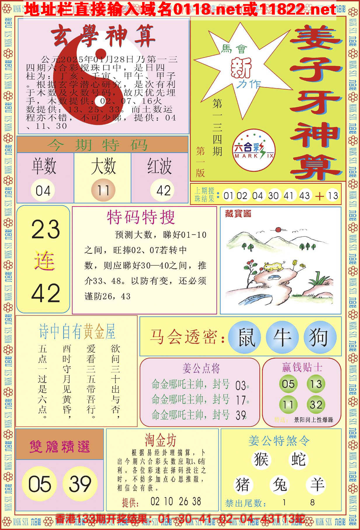 163 六合冠军版A 164 六合冠军版B 203 姜子牙神算A 204 姜子牙神算B